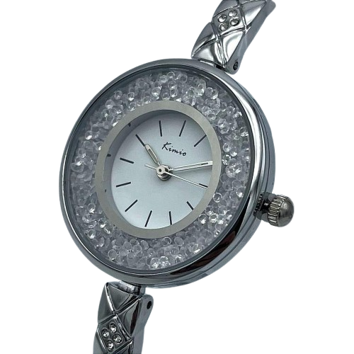 Kimio Elegant Women’s Watch – Silver Bracelet with Crystal-Studded Dial