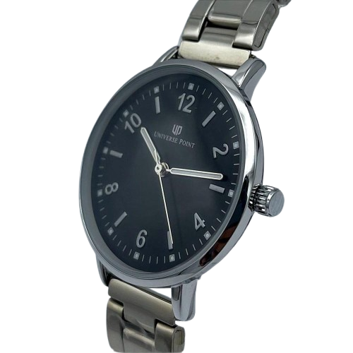 Universe Point Women’s Stainless Steel Watch – Black Dial with Silver Strap